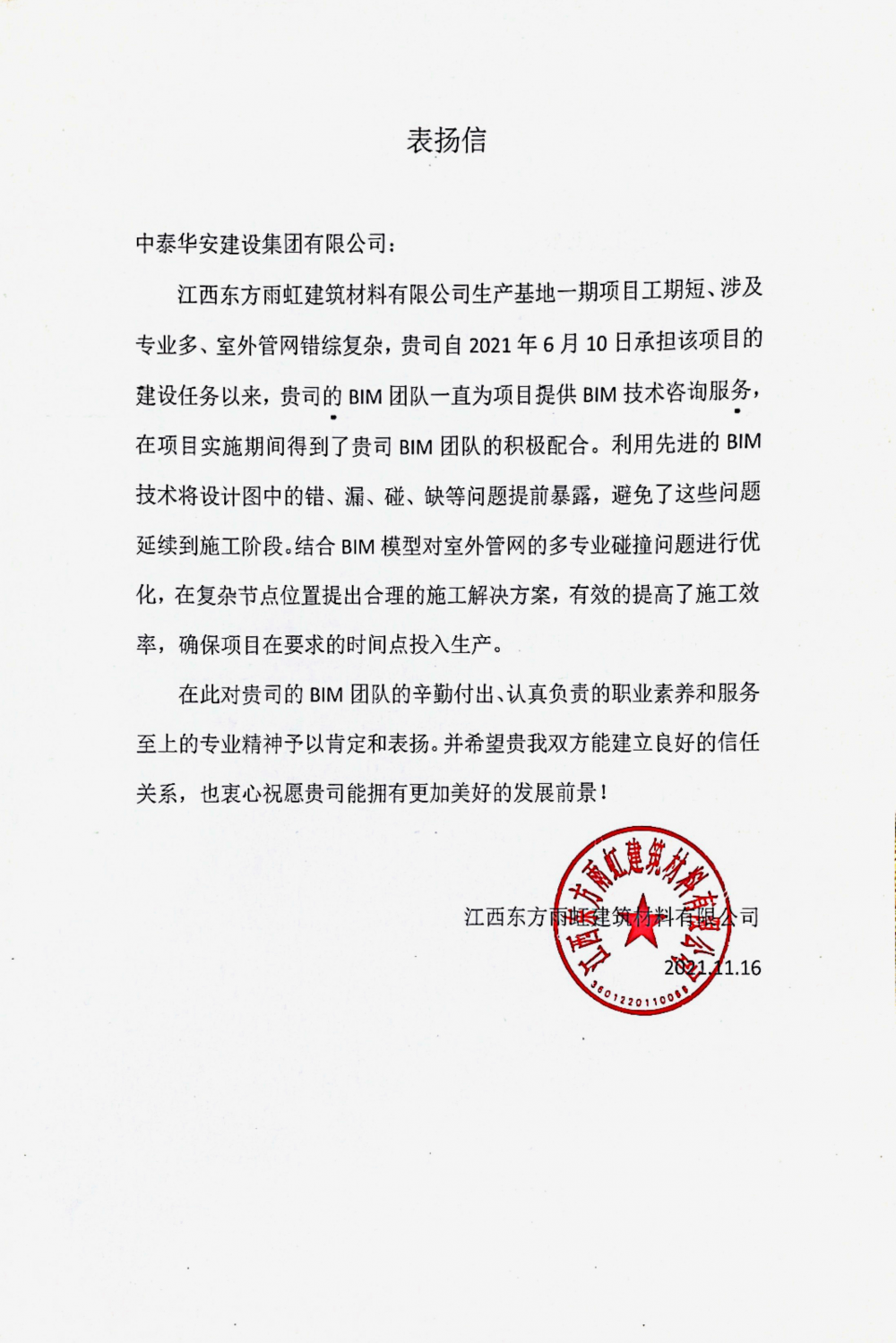 业主表扬信