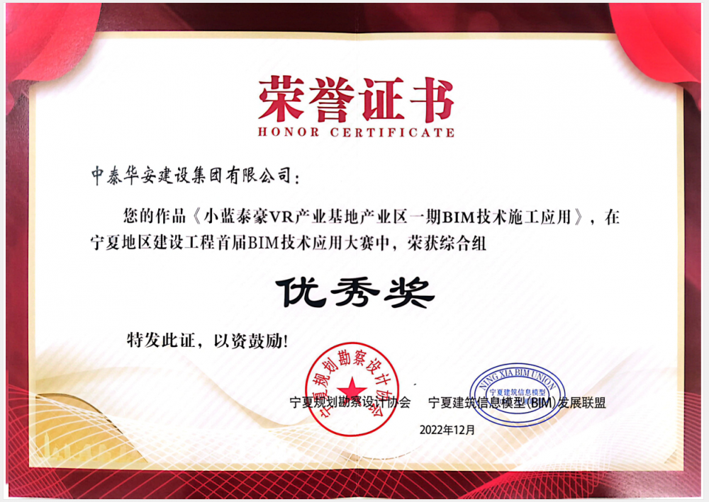 宁夏地区建设工程首届BIM技术应用大赛优秀奖
