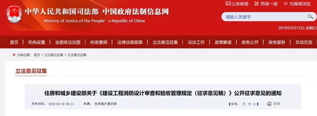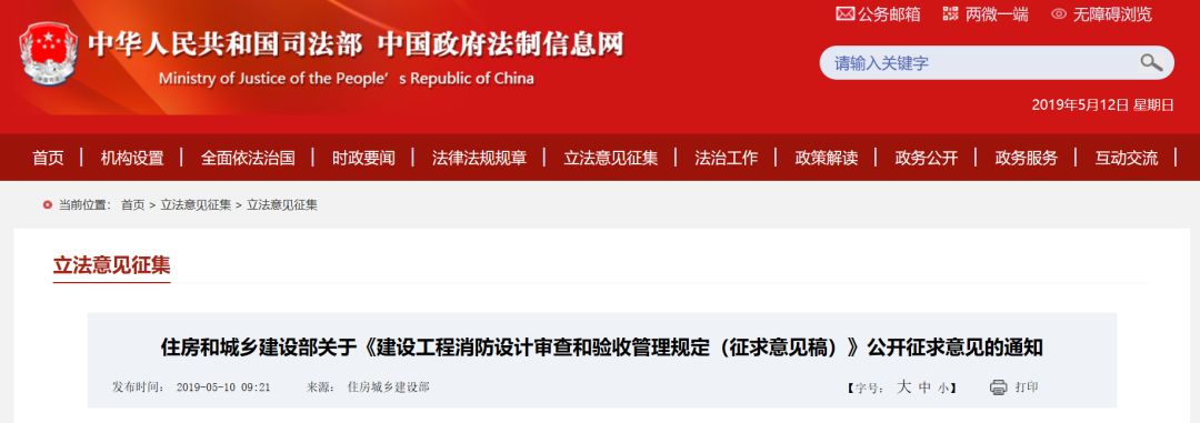 5月10日,住房城乡建设部发布了关于《建设工程消防设计审查和验收管理规定(征求意见稿)》公开征求意见的通知。