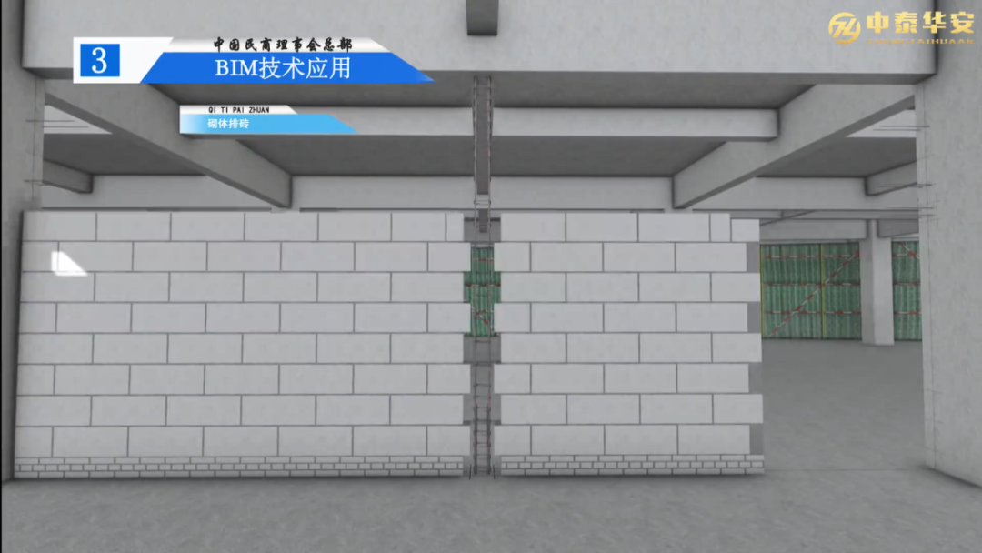 运用BIM模型对砌体进行仿真模拟排布生成排砖图纸指导施工,并精确计算各部位砌块用量,限额购料、确保砌块点对点运输、减少砌块浪费及建筑垃圾。