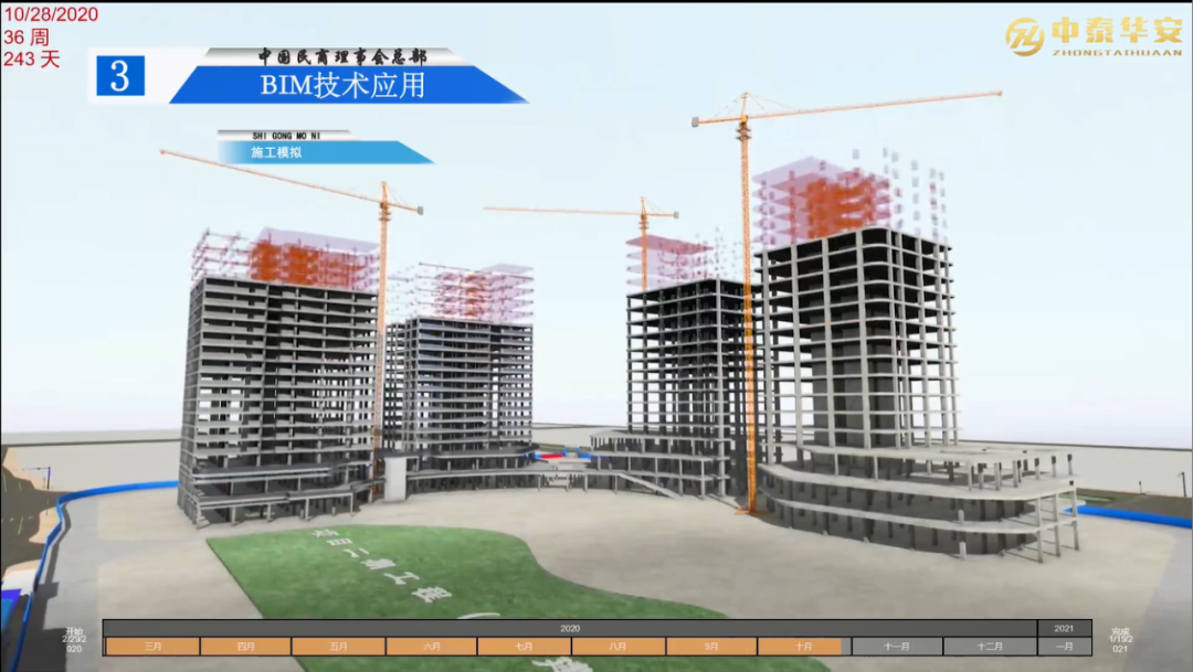 采用4D进度模拟验证总控节点计划,优化施工部署,实现对项目进度进行管控。