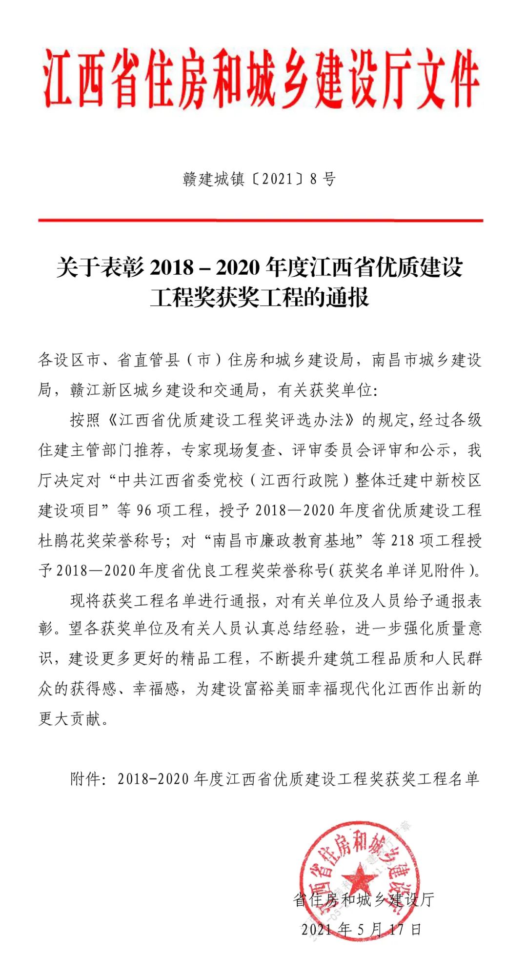 近日,江西省住房和城乡建设厅下发《关于表彰