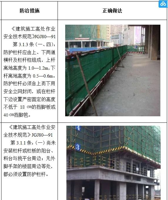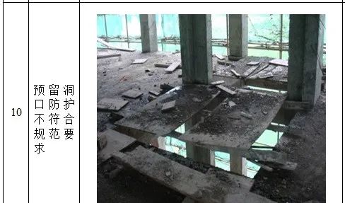 1、高处作业无安全立足点及未系挂安全带; 2、砌筑马櫈搭设不符合要求; 3、高处钢筋绑扎无操作平台; 4、吊篮内作业人员未佩戴安全带; 5、安全帽佩戴不规范; 6、临边无防护或防护不符合规范要求 7、防护棚搭设不符合规范要求; 8、卸料平台防护不符合规范要求; 9、电梯井防护不符合规范要求; 10、预留洞口防护不符合规范要求; 11、后浇带防护不符合规范要求; 12、伸缩缝防护不符合规范要求。