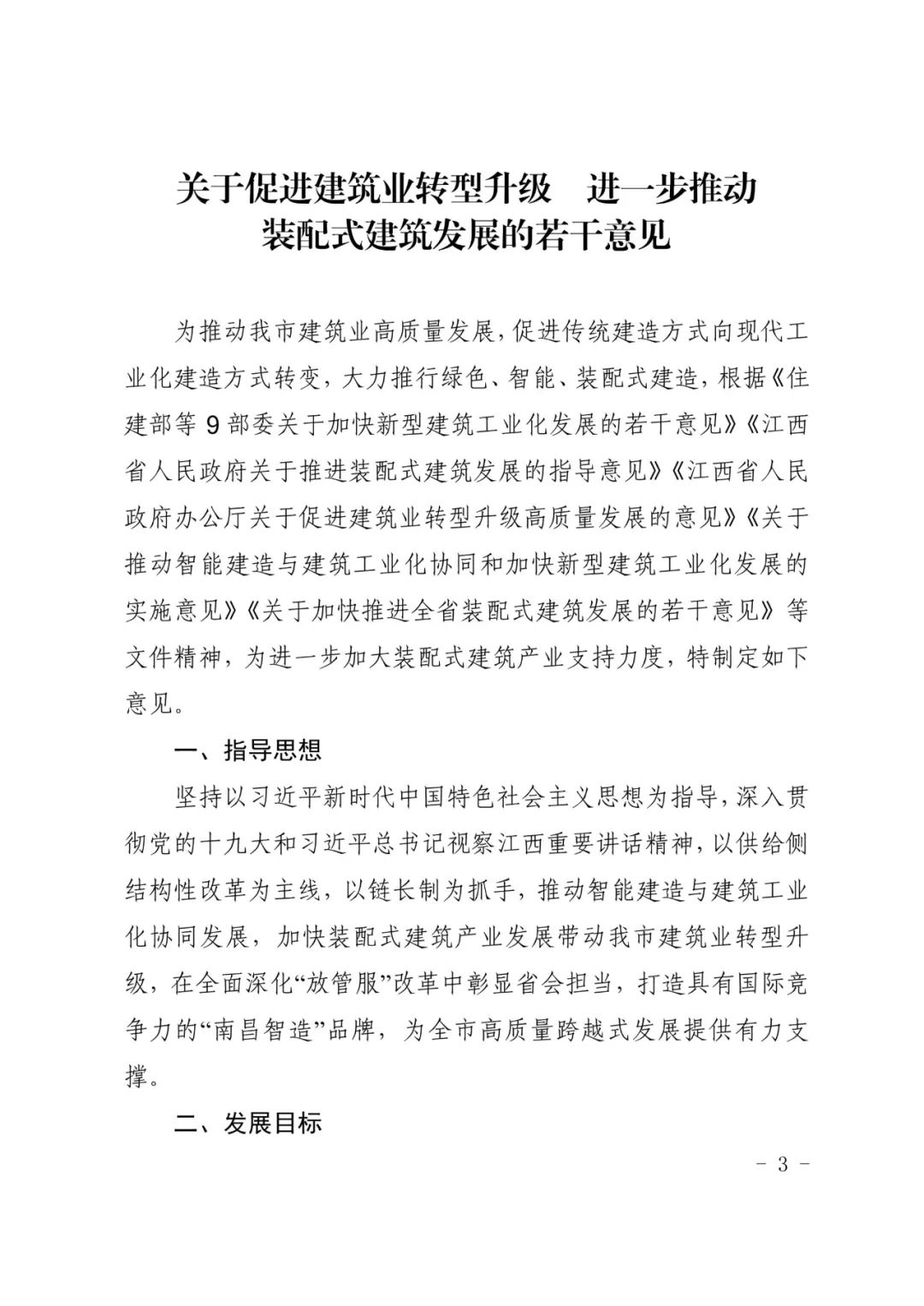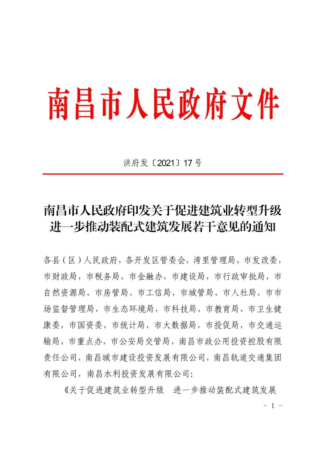 2021年9月7日,南昌市出台《关于促进建筑业转型升级 进一步推动装配式建筑发展的若干意见》(以下简称意见)。意见发布将进一步推动南昌市传统建筑业向新兴建筑工业化转型,加快实现建设节能、节地、节水、节材和环境友好型社会的目标。
