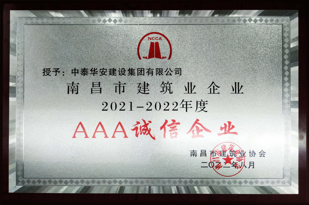 一直以来,公司秉承以人为本、厚德载物、高效优质、重誉守信的企业精神,全面践行依法治企和诚信经营,聚焦精益管理、创新创效,实现了企业持续性发展。此次获评,标志着中泰华安在企业素质、诚信意识及社会信誉等方面的各项指标表现优秀,是南昌市建筑协会及广大客户对我司整体实力的高度认可与肯定。