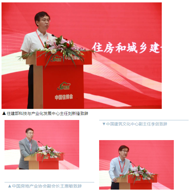 开幕式当天,住房和城乡建设部科技与产业化发展中心主任刘新锋、中国住博会共同主办单位中国房地产业协会副会长王惠敏、中国建筑文化中心副主任李剑等三家主办单位领导致辞。
